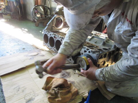 ◆TCM FD200-3 エンジンOH再開◆車両販売情報 / 2023年8月25日 2023年8月25日 TCM FD200-3 お盆👻と甲子園⚾も終わり熱波の中🤒 外注先からエンジンブロック、その他が帰ってきました‼ やっぱり戻って来るまで時間は掛かりましたね‼ ピストンにリングをはめて、あとはお馴染みの作業です… どこの会社もハンマーの柄を使う伝統芸⁉ 場内は36℃を超えています💦冷蔵庫にクーリッシュ入ってるよ🍦