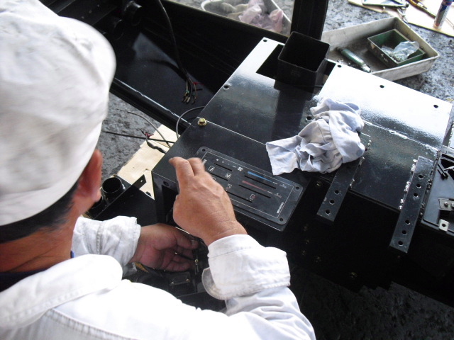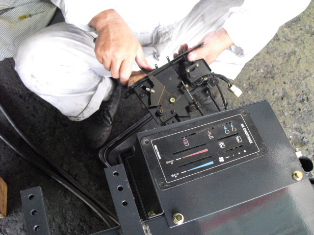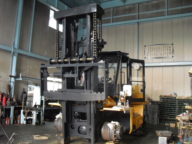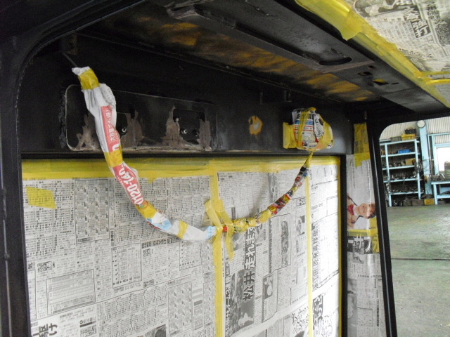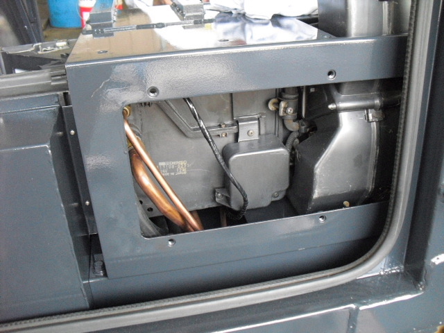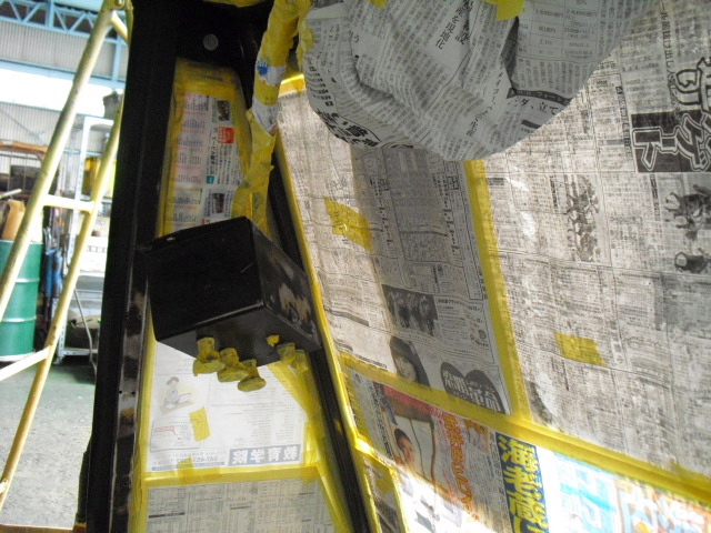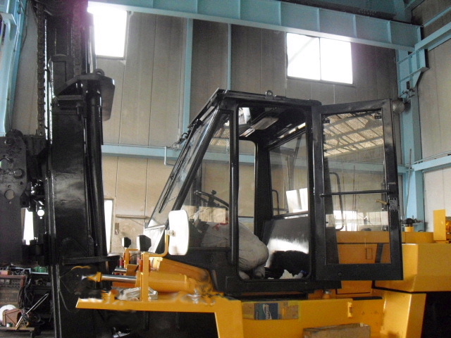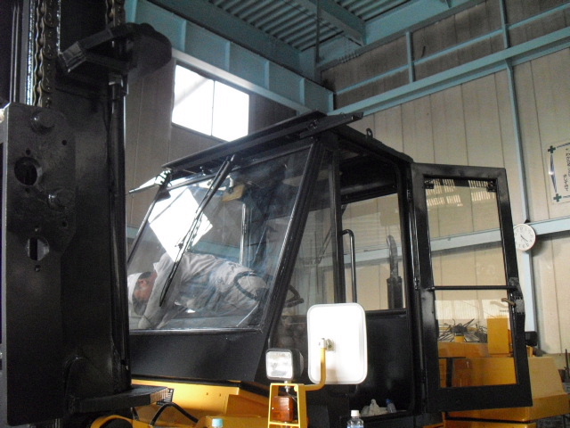 ◆中古販売用11.5tフォークリフトキャビン編◆車両販売情報 / 2011年8月8日 2011年8月9日 しばらく放置状態になっていた販売用中古11.5tフォークリフトのキャビン内部に手を入れる 段階までこぎつけました!!いやー長かった! エヤコン用モーターその他は全て新品ですよ 夏はバッチリです!! 操作レバー用のワイヤーはそのまま マスキングもばっちり!! 作業等用ライトS/W類もそのままです ワイパーモーターは新品です!! 吹き出し口はもとより内部通風部は当然バラバラにして清掃及び塗装済み!! タバコ臭やカビ臭は一切しませんよ やっぱりキャビンが乗ると、らしくなりますね~ のびのびになっていた仕上げ作業も秒読みになりました。 本当に長かったです!!その分、良い車に仕上がりました。
