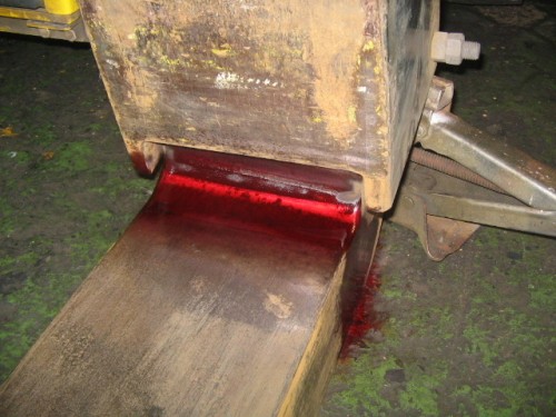 ◆フォークカラーチェック◆車両販売情報 / 2011年10月25日 2011年10月25日 11.5tフォークリフトのツメをカラーチェックします。 1液、にて汚れ・油分を落として 2液、を浸透させ この状態でも確認できますが・・ 3液=1液、をかけたら拭き取り2液の浸透具合をチェックします。 1=3液はブレーキクリーナーでも代用可能です。