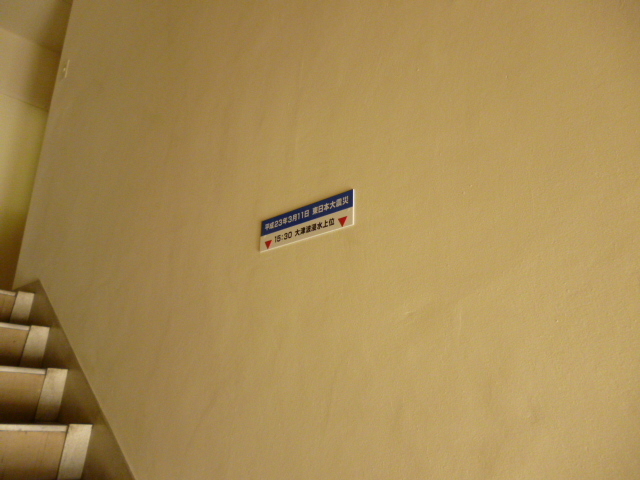◆再び、がんばっている仙台へ!!◆車両販売情報 / 2012年2月7日 2012年2月8日 先日、再び仙台に行ってきました。 お取引先の営業所内の風景です。 二階に上がる途中、綺麗にリペイントされた壁に一枚のプレートが!! 何だと思います? 【▼大津波浸水上位▼】 なんとも言えません!! キャビンまで浸かってしまいましたが!!修理後、元気に働いています◎