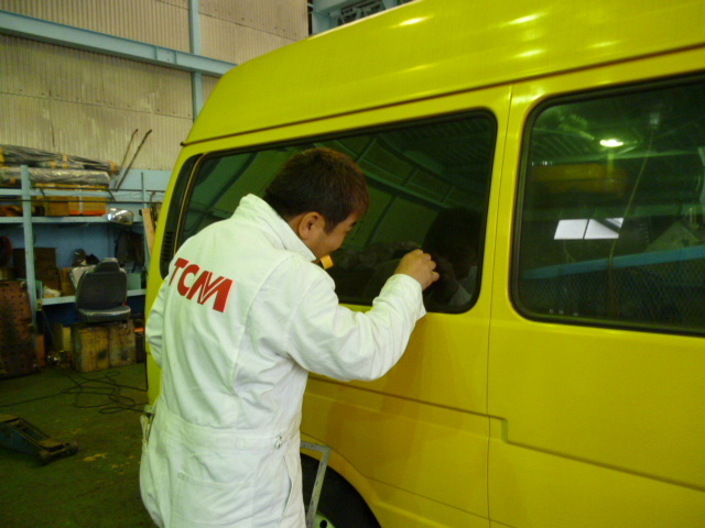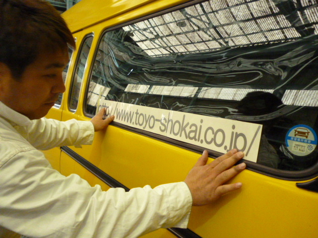 ◆NEWアイテム◆車両販売情報 / 2012年3月7日 2012年3月7日 HP用ステッカー作っちゃいました!! 遅ればせながら、サービスカーに貼っちゃいます。 担当は社一番の不器用男です。 綺麗に貼れましたね!! アクセスお待ちしています!!