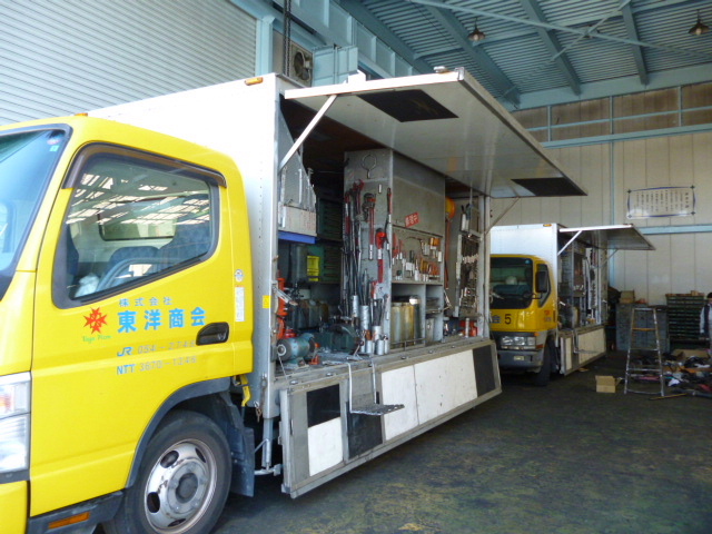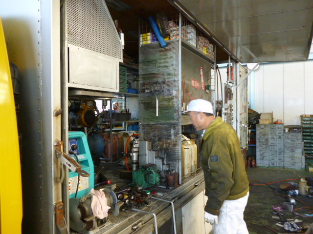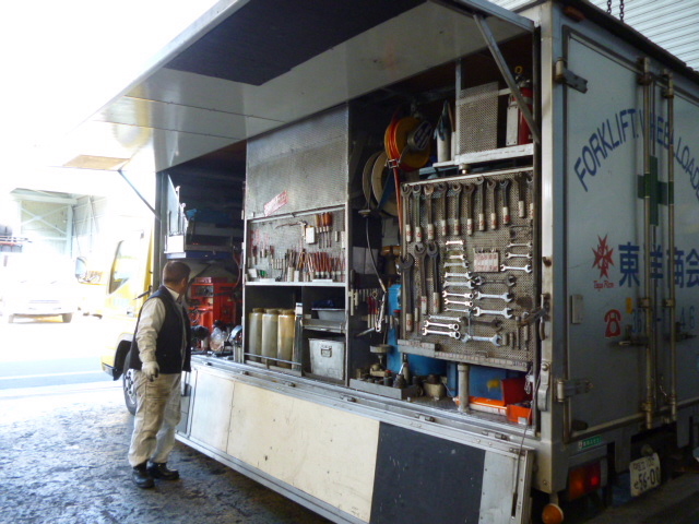 ◆走行距離210000キロ!!◆車両販売情報 / 2012年4月7日 2012年4月7日 サービス5号車が走行210000km!!をこえてしまい 走行の少ない3号車と工具類の載せ替えをします。 アルミBOXごと載せ替えればと思ったんですけど!? もの凄い重量なのでX フォークリフト屋さんなのに、運ぶフォークが有りません!! 全て手下ろし&手積みです!! 積んでいる工具類は、ほぼ同じはずなんですけど・・・ 各自、お気に入り工具その他、拘りが有るとか・・・ こんな作業は土曜日しか出来ませ~ん どうやら満開ですね!! 本日も営業してまーす!!