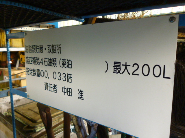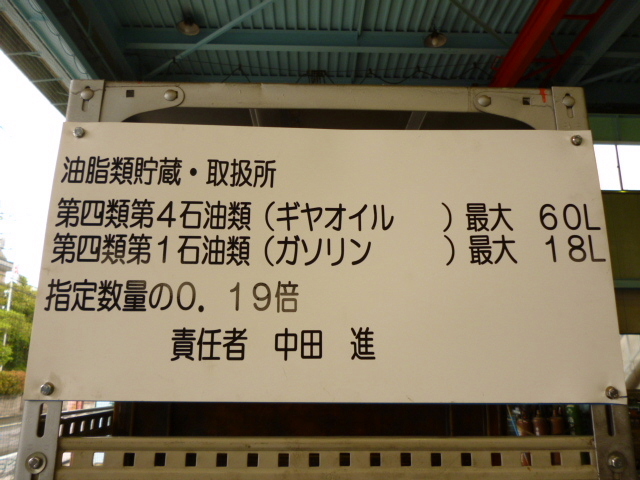 裏側には廃油タンクを設置して取扱責任者等の看板を取りつけました。