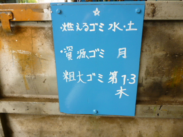 ゴミ分別の看板だけは、なぜか志願の手書き・・・ノーコメント!!