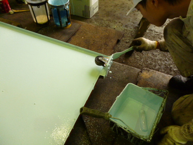 ◆特別編 PART3◆車両販売情報 / 2012年6月12日 2012年6月12日 続きまして東側のHOTコーナーも整理して、部品等の保管庫にドアーを設置しました。 工場の桟を利用してレール代わりに使います。 鉄板を簡単に加工してキャスターを取り付けました。 刷毛塗りして・・・ 綺麗に塗れました!! By稲毛24歳 レール部が上ならドアーの開閉もスムースにいきますねー