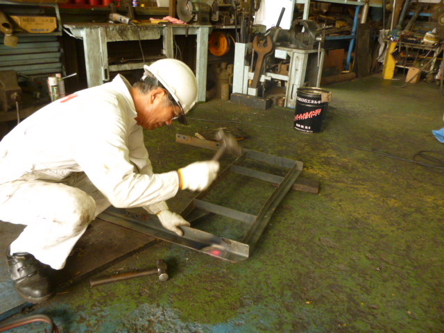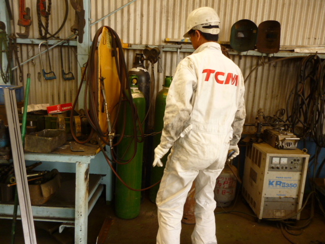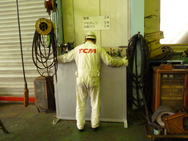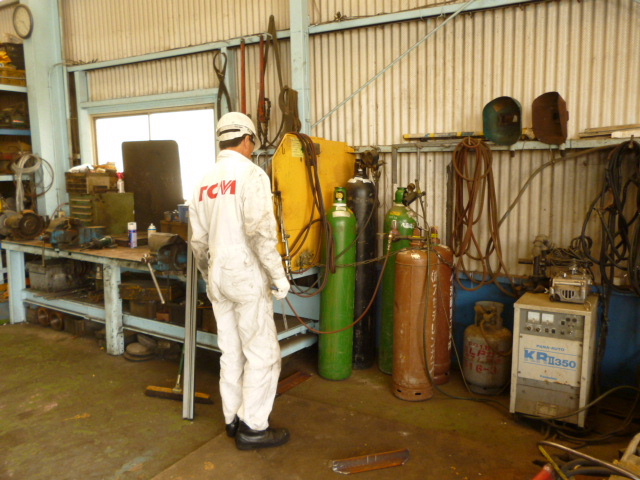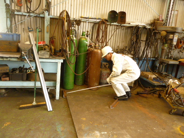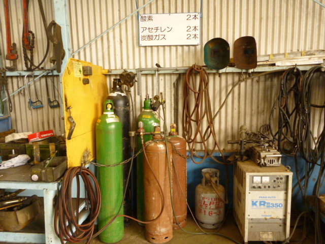 ◆続・ビフォアー&アフター工場編◆車両販売情報 / 2012年6月18日 2012年6月18日 酸素・アセチレン置き場 こんどは、この回りをどうにかしようと考え中!? うん・・・・・・・・・ とりあえず計っておこう!! お決まりの!看板は設置しました。 どうです? 反対側の工場も同様に! 見た目はOKかなぁ~ で・・早速バーナーを使ってフィンガバーの板金修理を・・・ チリのおじさん再登場!!10回に1回は自分の手を叩くとか 因みに赤い所も触らないように・・・・