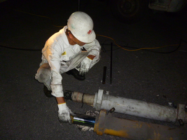 PM9:50 先発組み到着シリンダー取り外し作業開始!!