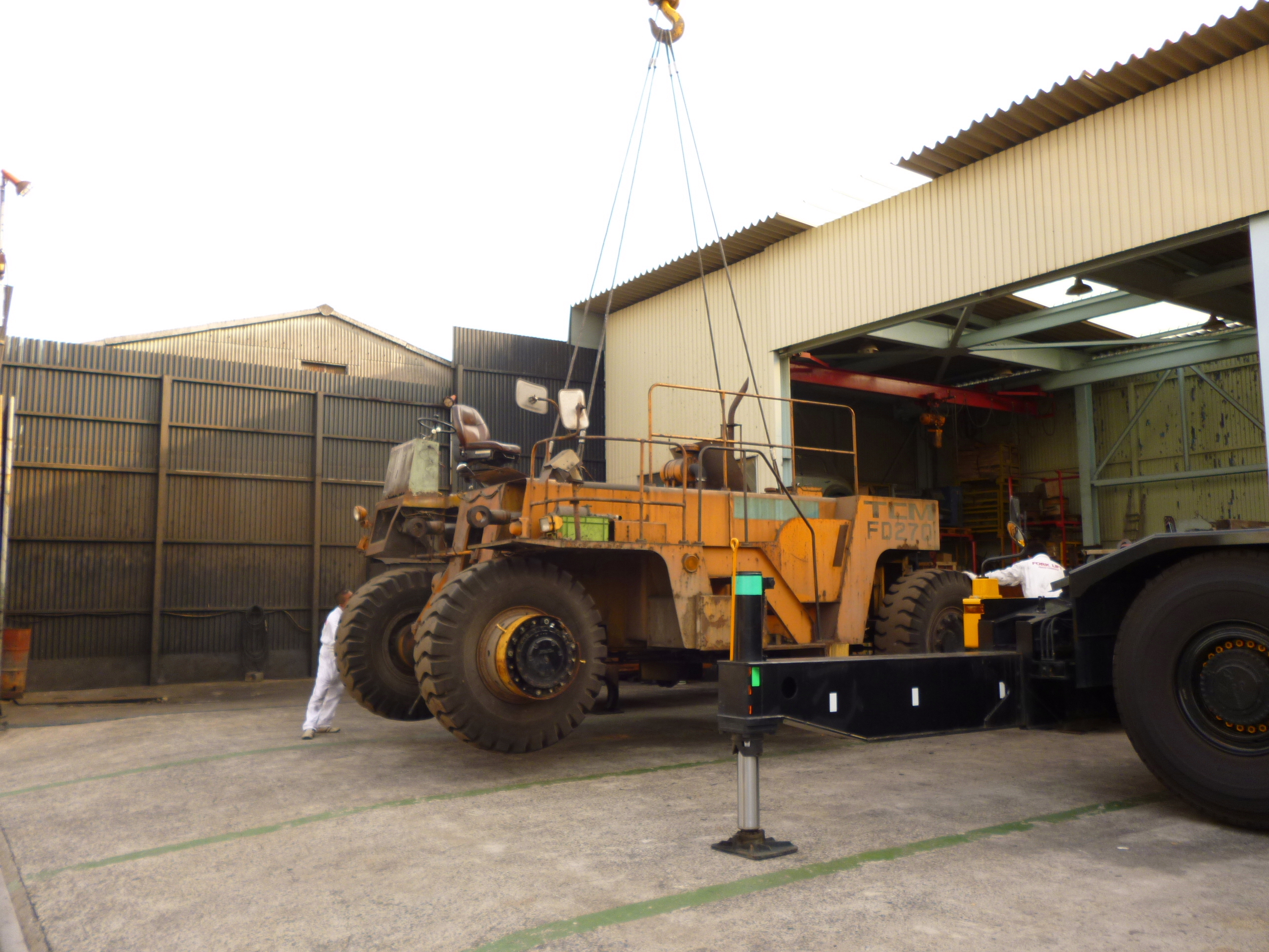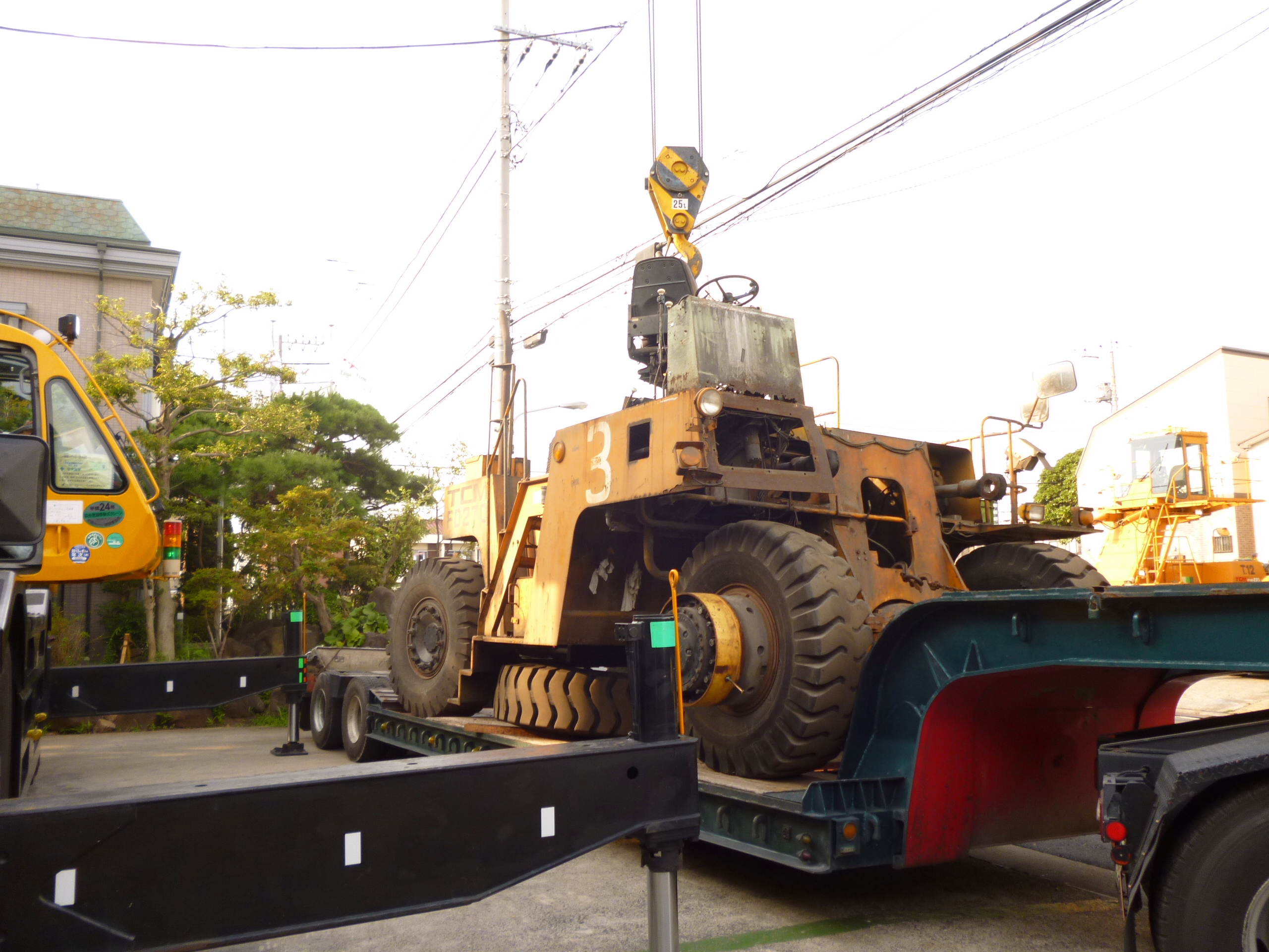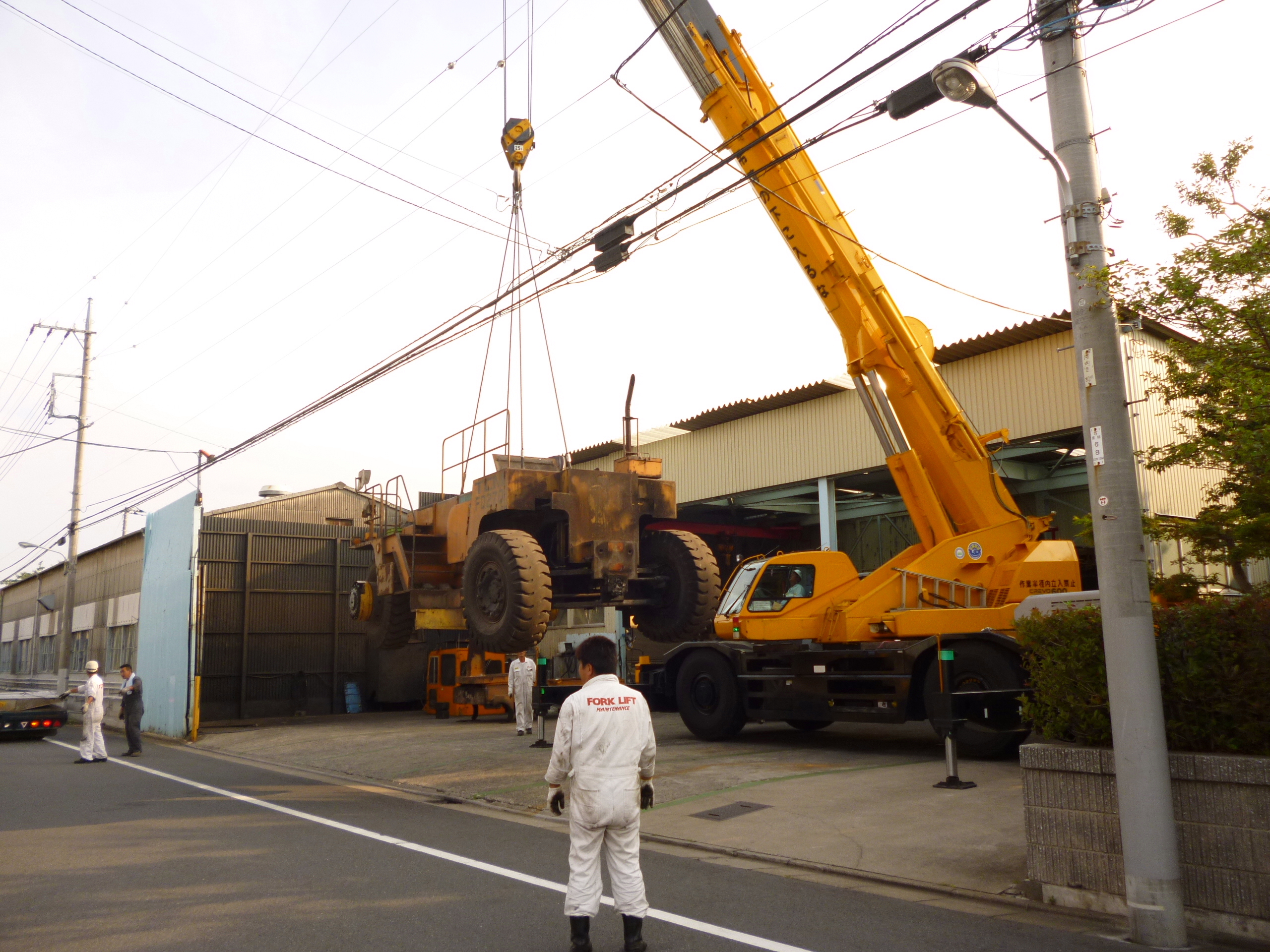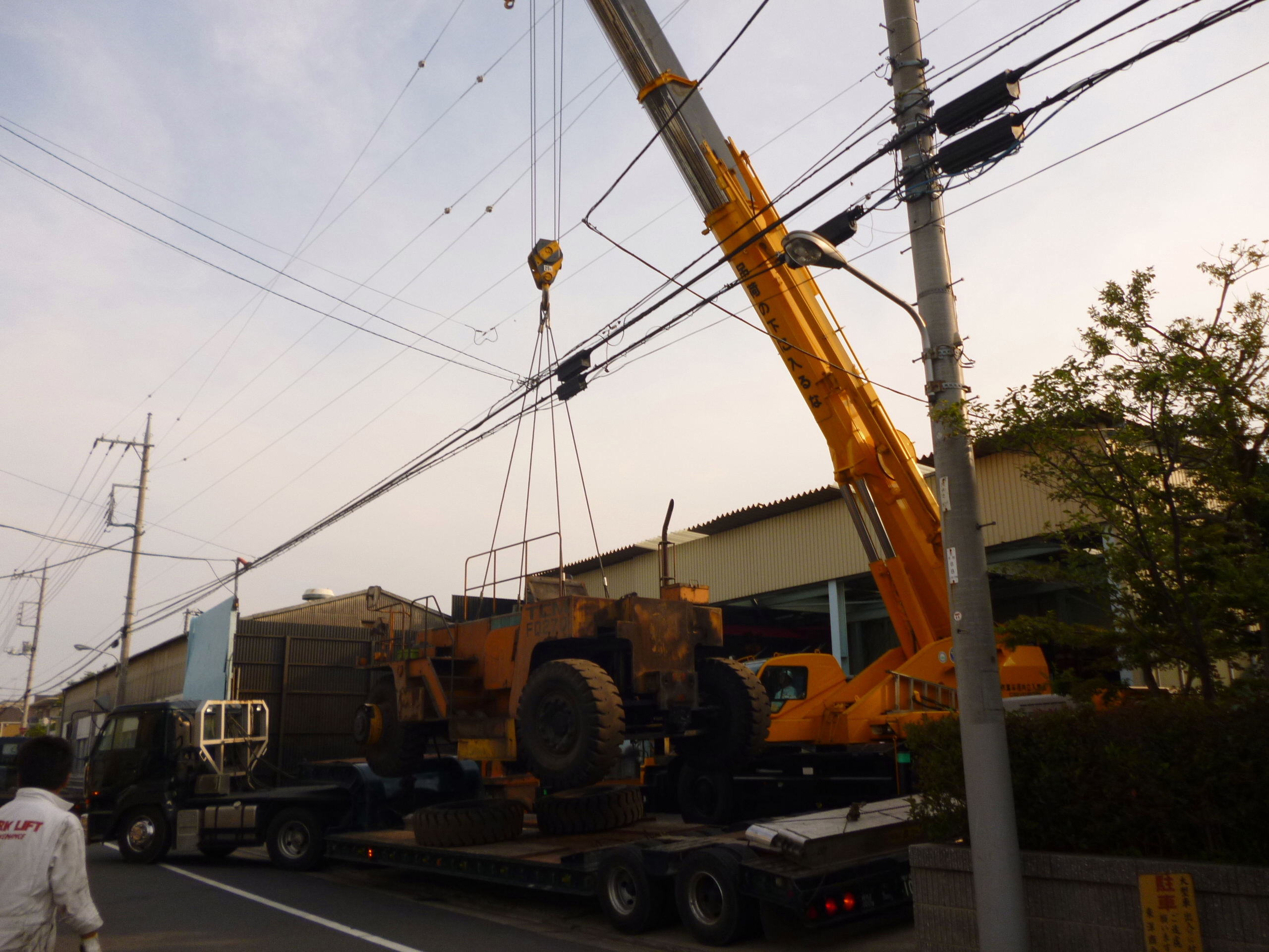 60tクレーンで本体を吊っている間にトレーラーは移動します!!