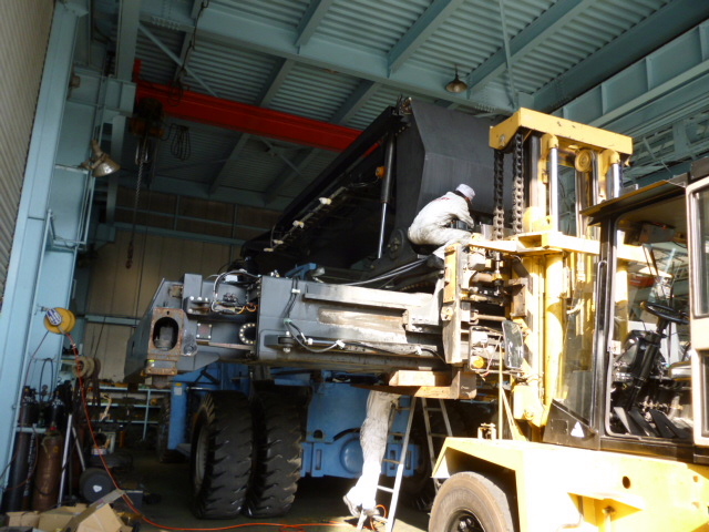 本体は工場へ移動してスプレッダーの取り付けをします!!