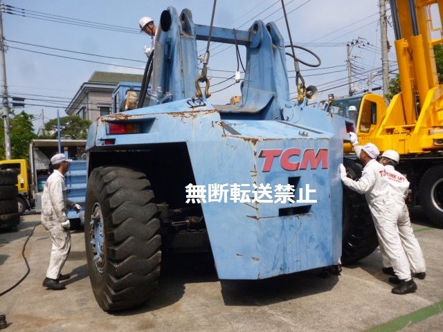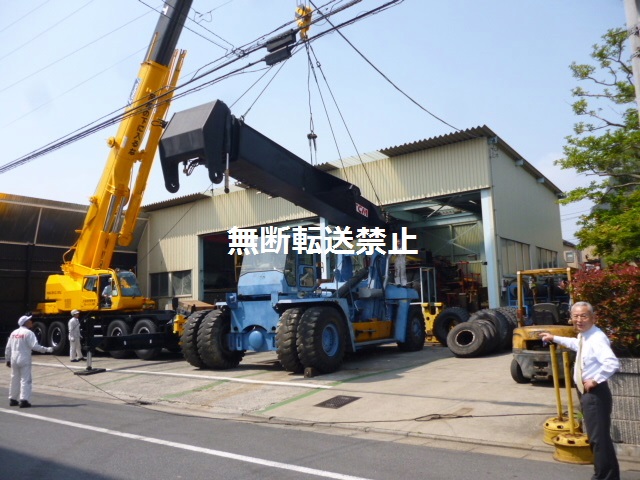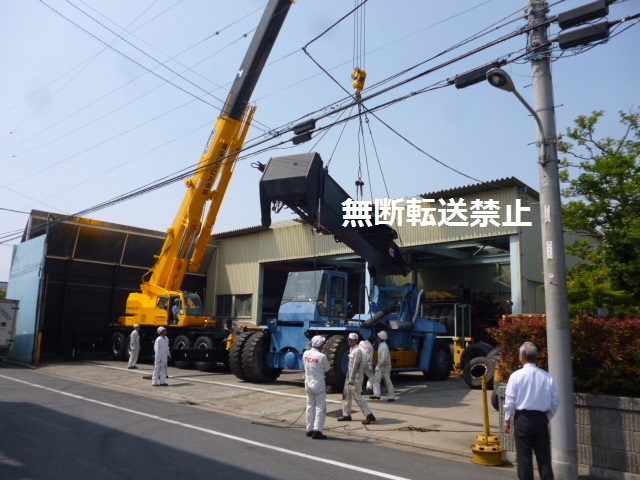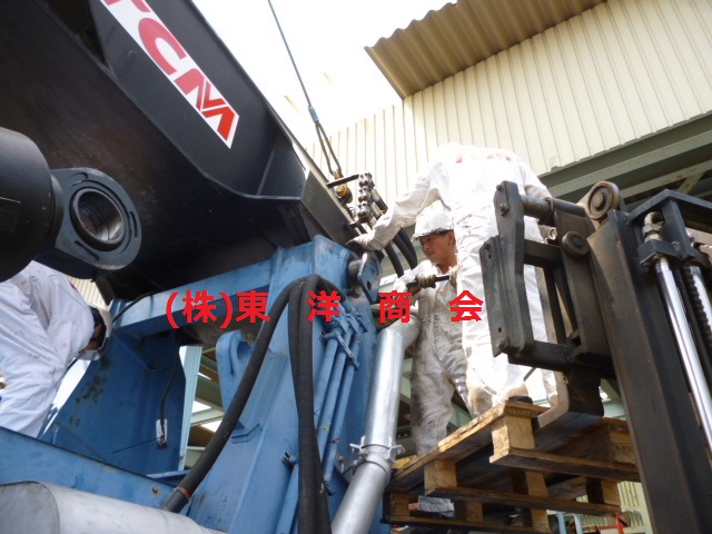 クレーンは帰ってもらい、10tフォークリフトで取り付けます!!