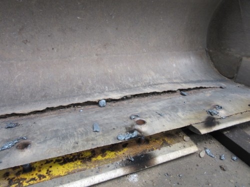◆TCM L13バケット修理パート2◆車両販売情報 / 2015年4月27日 2015年4月27日 TCM L13 2台目のバケットを修理しました。 エッジだけでは無いようです。 特殊バケット(容量減仕様)の部分が大きくササクレています !! なんとか綺麗に溶接出来ました。 今回のダブルエッジは支給品です。 今日中に仕上げて、明日取付に行きます。